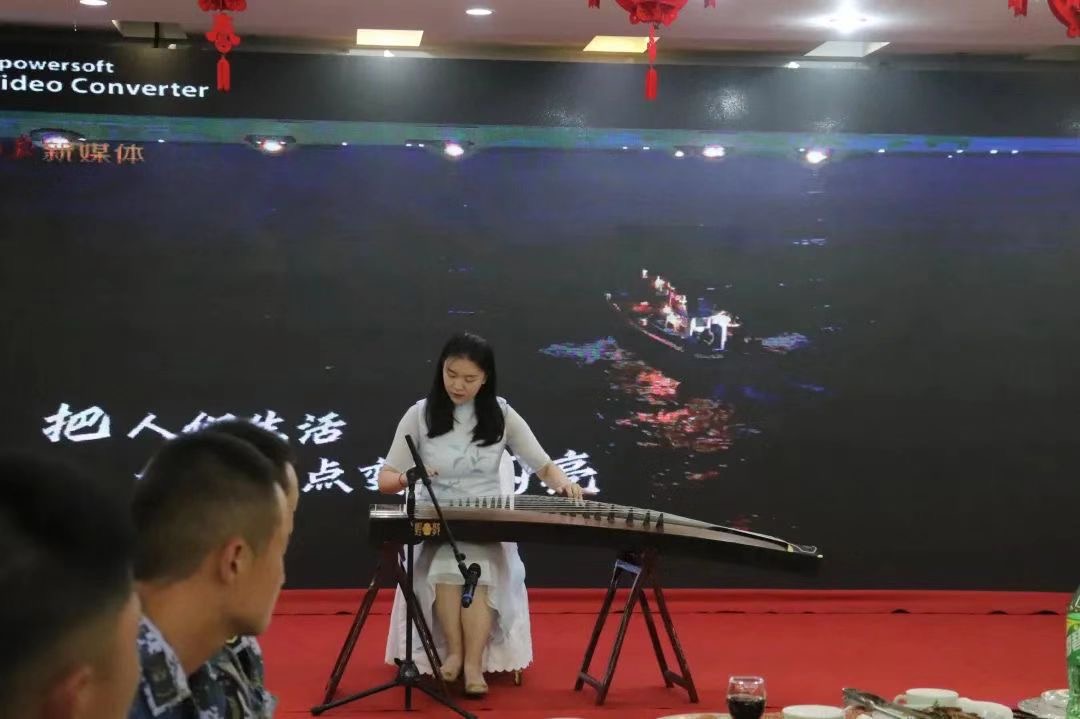 部分学生,为教官们表演了歌曲《月牙湾》、《静夜思》、双声部合唱《心脏》、古筝独奏《少年》、舞蹈《映山红》等节目。
