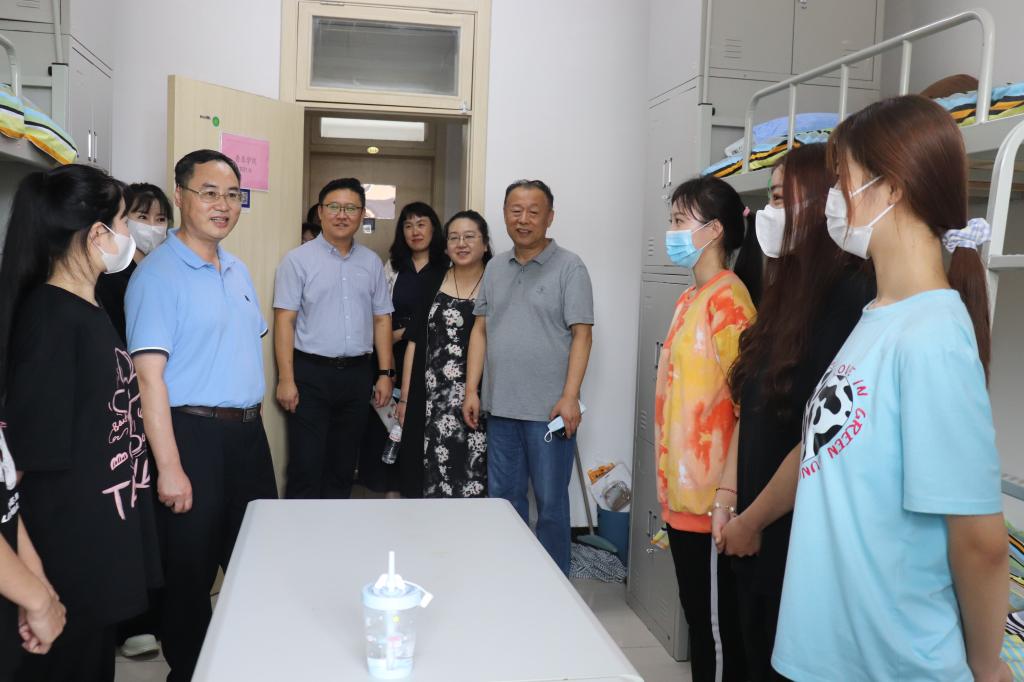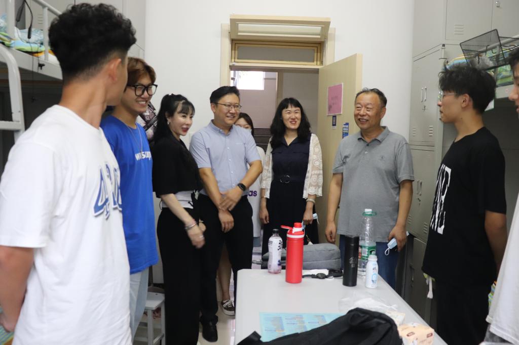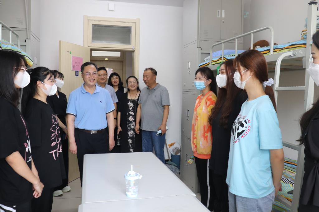9月9日下午,青岛大学党委常委、副校长李军来到滢园新生宿舍走访慰问正妹av 2021级新生。学院党委书记姜世安、院长王静怡、副书记司现鹏、副院长董博超、李晓囡和新生辅导员温丽陪同走访。