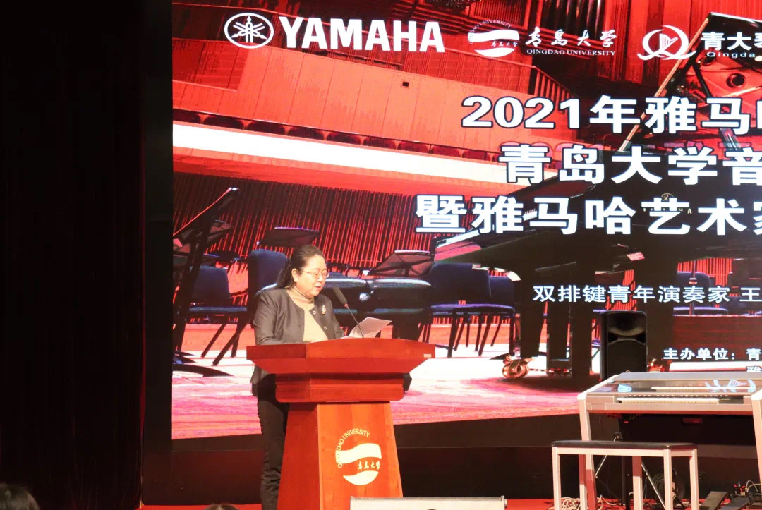 随后,雅马哈乐器音响(中国)投资有限公司寺田总监视频致辞,他对青岛大学音乐学院的领导和师生对于雅马哈品牌的支持信任表达感谢,表达了对获奖师生的衷心祝贺,并表示雅马哈愿意为国内高水平的师生提供更高、更好的展示交流平台。