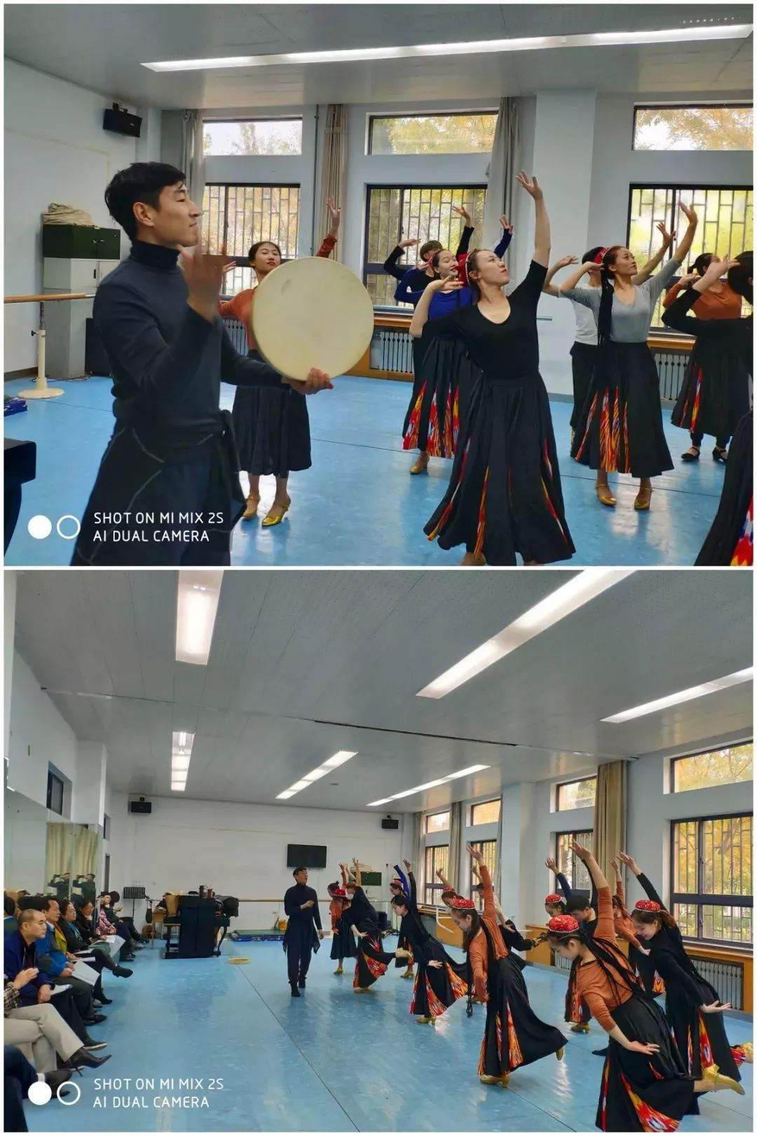 在102舞蹈教室由李斌老师展示的民族民间舞传统组合教学,赢得了评委和前来观看师生的热烈掌声。