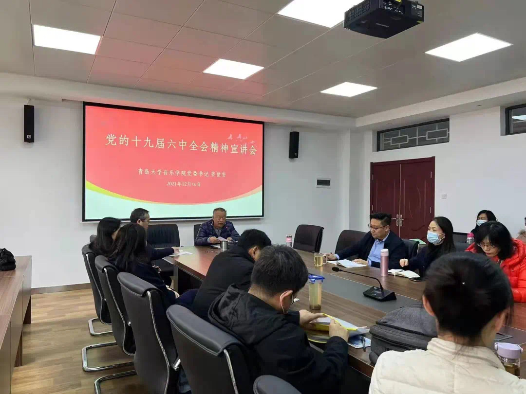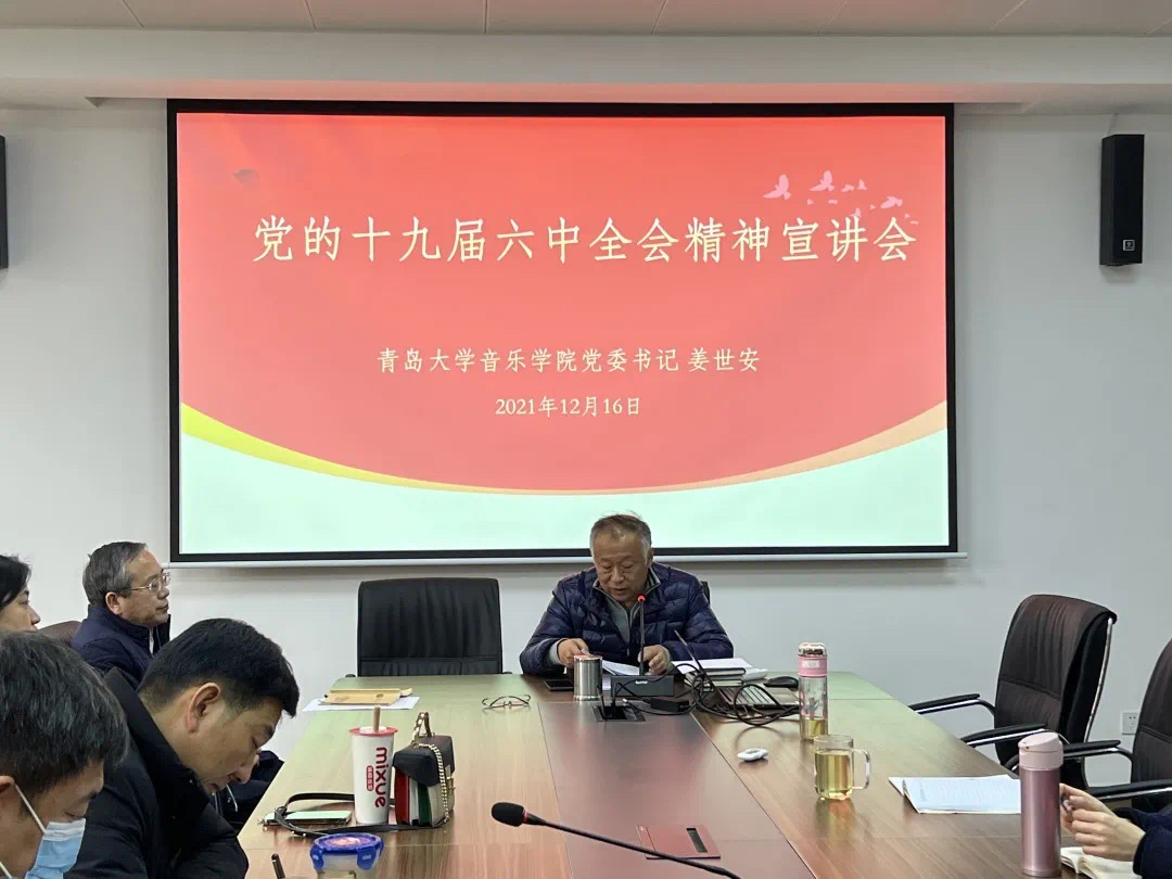 12月16日下午,音乐学院党委书记姜世安在学院资料室宣讲十九届六中全会精神,学院全体教工党员和部分学生党员代表参加宣讲会。