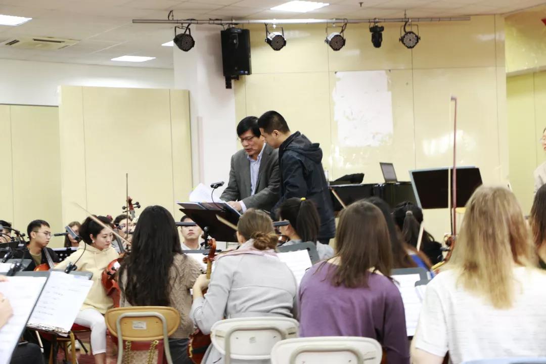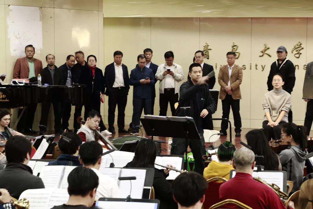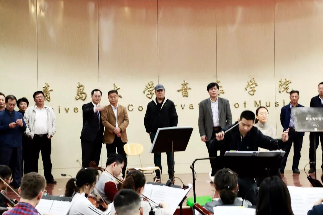 2019年11月1日上午青岛大学校长夏东伟青岛大学党委常委、副校长李军青岛大学校领导邵彬以及相关学院负责人莅临歌剧《韩信》排演现场指导。在音乐学院103音乐厅观看交响乐团排练,在剧院观看唱团舞蹈队排练。