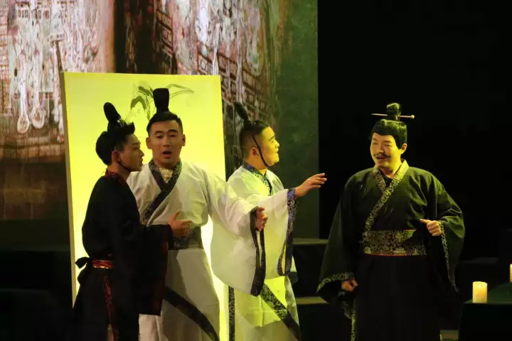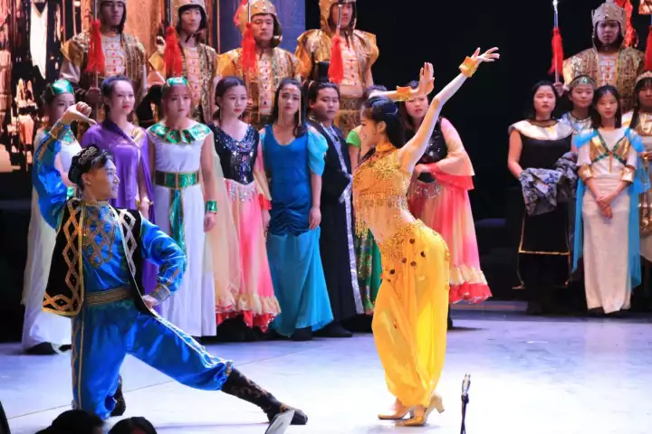 师生编导参演的四幕大型历史民族歌剧《敦煌之恋》在剧院上演,校党委常委、副校长邵彬、李军与青岛市文联、音协、剧协,来自省内十余所高校的同行以及社会各界人士千余人一同观看了演出。