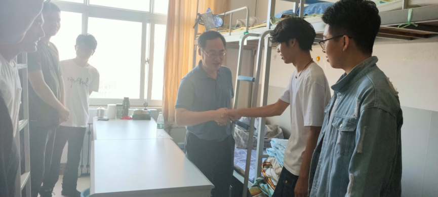 每到一个宿舍,同学们都踊跃的和领导老师们沟通交流。他们说,一入校就感受到了学校的热情和温暖,对于学校和学院的学习和生活环境感到满意,一定不负老师们的嘱托,要发奋努力,争取学有所成。