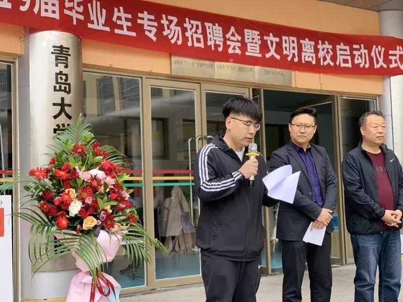 为贯彻落实学校第三次党代会提出的“三全育人”理念,打造“四温”育人环境,满足社会对高素质艺术人才的需求,促进毕业生高质量就业,确保毕业生安全文明离校,5月14日上午,青岛大学音乐学院在德雅楼前隆重举行2019届毕业生文明离校启动仪式暨专场招聘会。