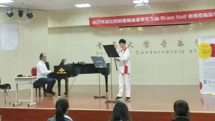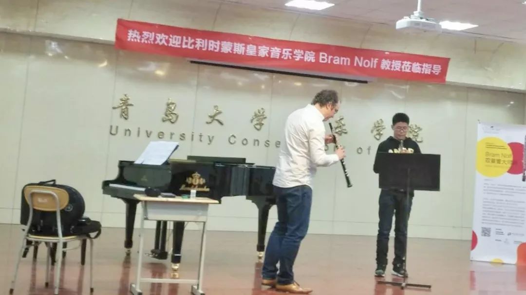 2019年3月25日下午18:00,比利时国家交响乐团的首席双簧管、比利时蒙斯皇家音乐学院的双簧管教授 Bram Nolf受青岛大学音乐学院西洋管弦系管乐教研室邀请,在音乐学院103排练厅开展大师课。Bram Nolf 是欧洲顶级的双簧管演奏艺术家、教育家;是比利时国家交响乐团的首席双簧管;比利时蒙斯皇家音乐学院双簧管教授。已在世界各地举办多场音乐会、室内乐音乐会、大师班和独奏音乐会。