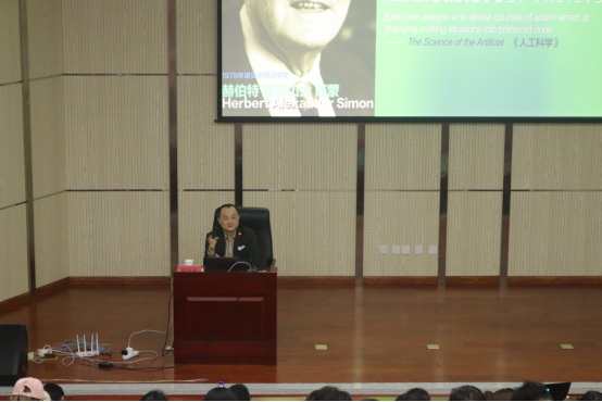 讲座伊始,任文东向大家介绍了设计在当今社会中的重要地位以及在未来设计将会担任的角色。随后,他展示了系列个人及团队完成的优秀设计作品,透过这些作品,我们看到了任教授鲜活的艺术人格和丰盈的创造力。任文东表示,未来的设计一定将引领人们的生活,先进的材料、AI绘画、元宇宙、数字时代等,这些都对设计人才提出了新的要求。最后,任文东也向同学们提出了宝贵的建议:要坚守文化自信、讲好中国故事、担当文化传承与创新,让青年人更好地把握机遇与挑战。