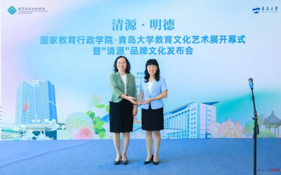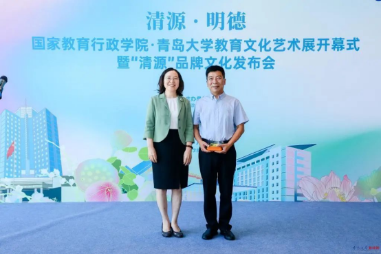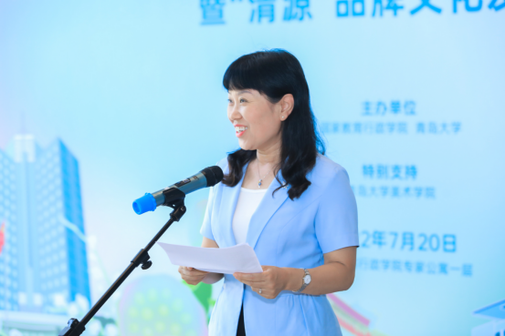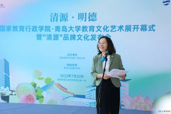 刘彩云在致辞中表示,“清源·明德”教育文化艺术展是国家教育行政学院与青岛大学双方加强互动交流、推动合作的一次有益尝试。她强调,两校共同策划举办此次教育文化艺术展,用艺术作品形式展现近现代教育大家献身教育事业的动人故事,设计开发“清源”品牌文化系列文创作品,旨在进一步提升完善学院的视觉形象标识体系。希望以此次教育文化艺术展为契机,两校在党建联建、教育培训、文化交流等方面深度交流、加强合作、共谋发展,共同为构建高质量教育体系不断作出新的更大贡献。