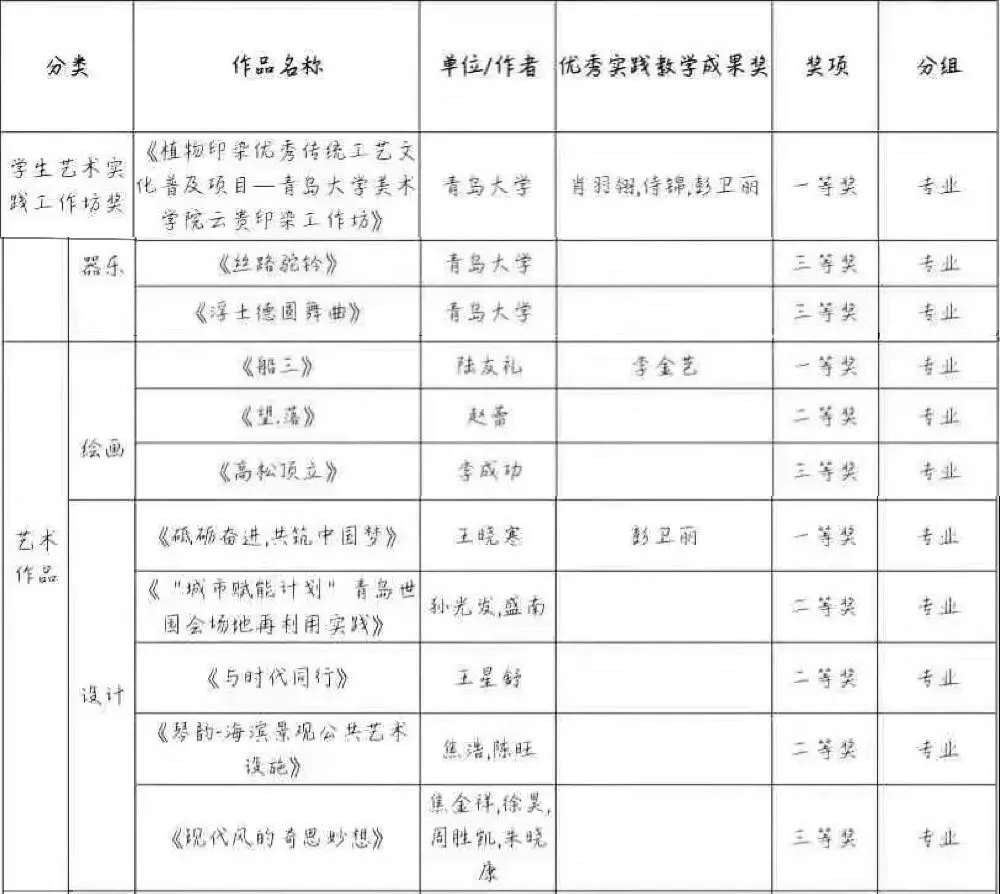 美术学院提报的艺术实践工作坊《植物印染优秀传统工艺文化普及项目—青岛大学美术学院云贵印染工作坊》、美术学院绘画作品《船三》被推报参加将在四川举办的全国大学生艺术展演。
